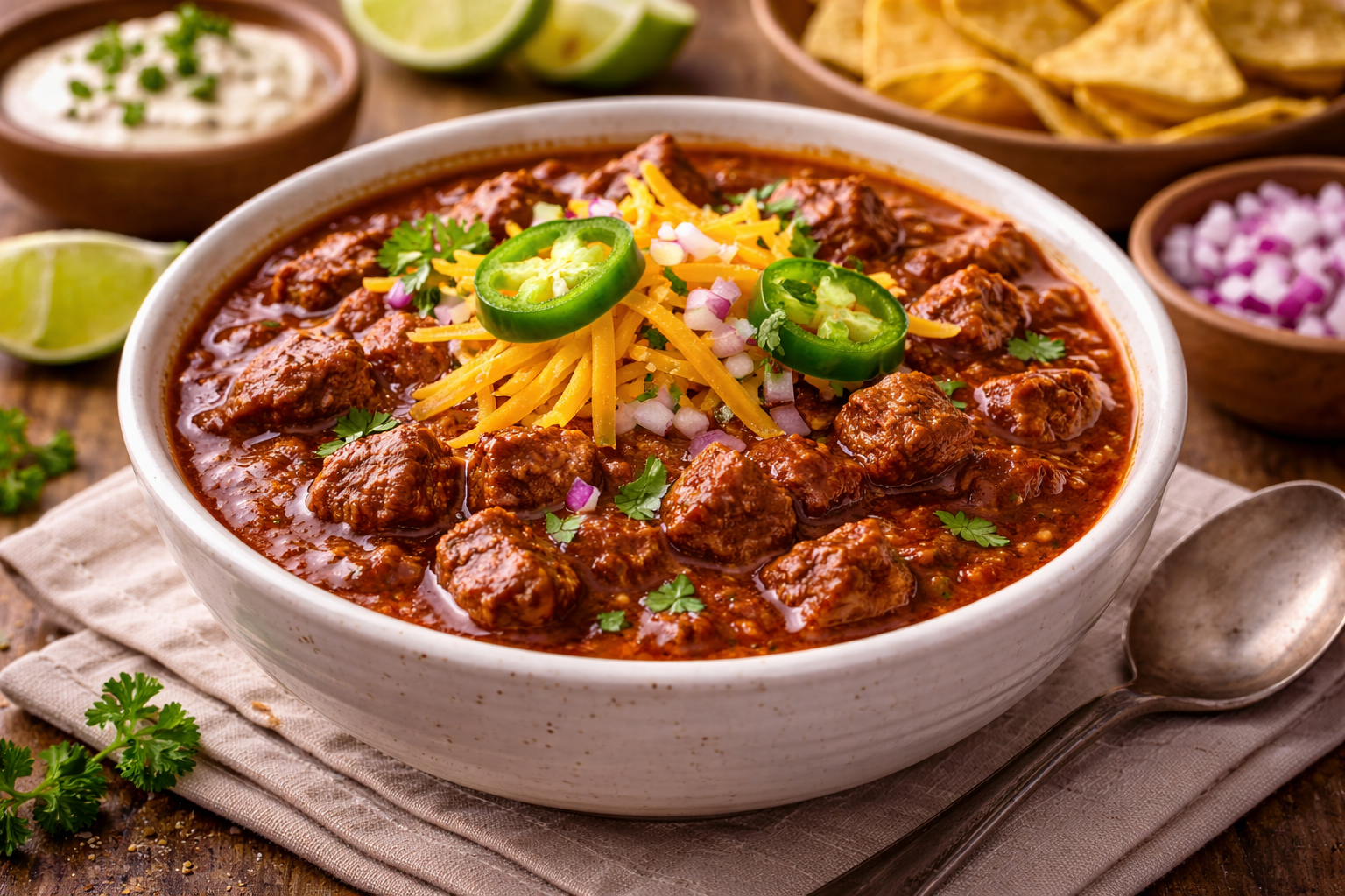 Texas chili is famous for one important reason: it’s all about the meat and the chili flavor. No beans, no shortcuts—just tender beef, bold spices, and slow cooking that lets everything come together naturally. It’s simple, honest cooking, the kind that’s been passed down through generations.